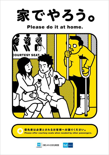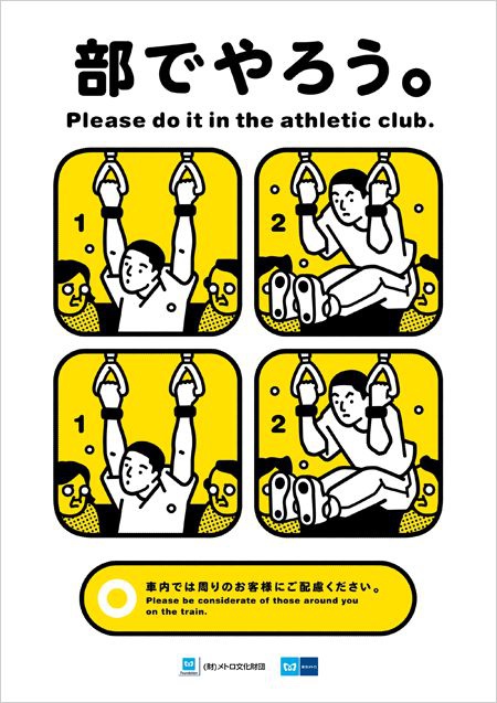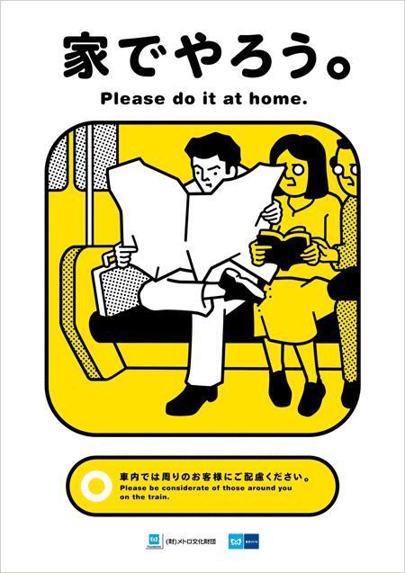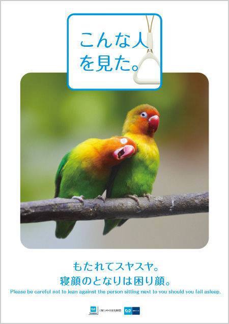 日本鐵道公司的車站海報,告訴大家「坐電車時不要睡倒在別人身上」~